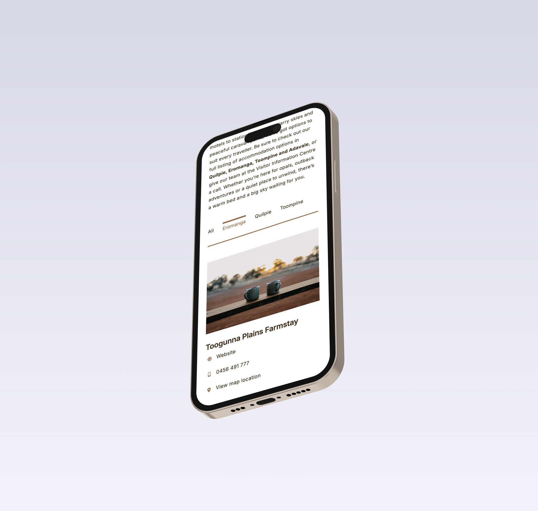 Quilpie Shire needed a more accessible, user-friendly website to promote tourism and help visitors plan their stay. I led the redesign with a focus on usability, clarity, and accessibility, resulting in a streamlined, mobile-first experience for both visitors and local operators.